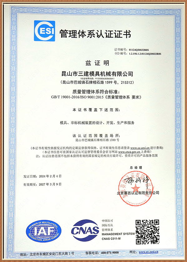 昆山市三建模具機(jī)械有限公司 創(chuàng)建于1996年,是一家研發(fā)生產(chǎn)電冰箱模具(電冰箱門、箱真空成型吸塑模、沖孔切邊模、 發(fā)泡內(nèi)外夾具、沖壓模具)產(chǎn)品并提供成套專業(yè)化控制解決方案的企業(yè)。 公司位于昆山市經(jīng)濟(jì)技術(shù)開發(fā)區(qū)石牌工業(yè)配套區(qū),交通便利。公司占地面積3.3萬平方米,建筑面積1.2萬余平方米,固定資產(chǎn)達(dá)5000萬元。 公司已通過ISO 9001:2008認(rèn)證。 公司現(xiàn)有員工120人,各類專業(yè)技術(shù)人員35人。擁有蘇州市級(jí)企業(yè)技術(shù)中心和省級(jí)工程技術(shù)研究中心,擁有優(yōu)良的專業(yè)化研發(fā)團(tuán)隊(duì)和自主知識(shí)產(chǎn)權(quán)。 公 司擁有完善的銷售網(wǎng)絡(luò),產(chǎn)品80%以上出口,銷往全球10多個(gè)國家和地區(qū)。主要客戶品牌如三星、松下、日立、東芝、夏普、三菱、三洋、星崎、LG、伊萊克斯、惠而浦等。 公司旗下?lián)碛刑K州...